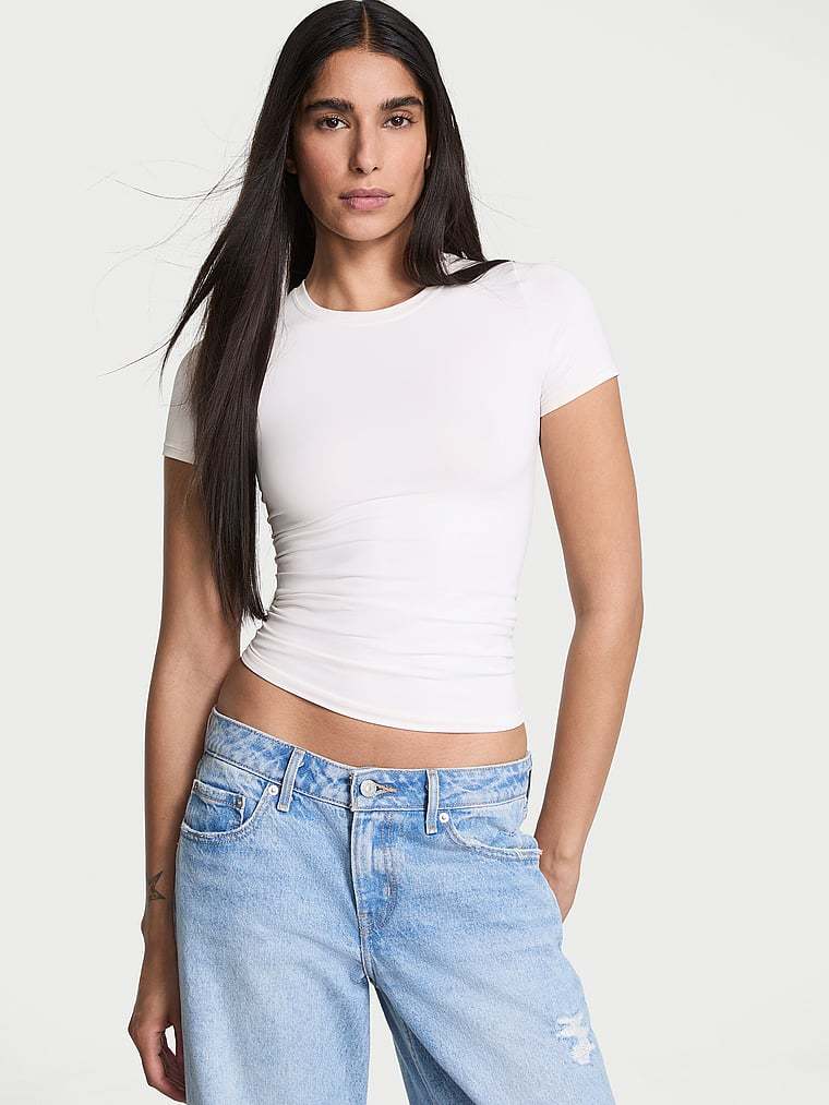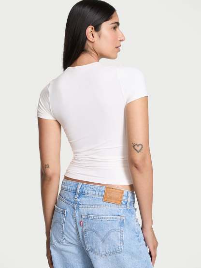 It's the crewneck tee you've been looking for: a body-hugging base layer crafted in buttery fabric without bulky seams for a smooth, polished look every time.