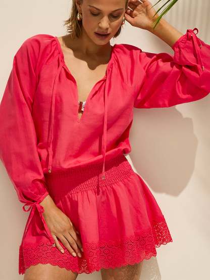 - Smocking at waist