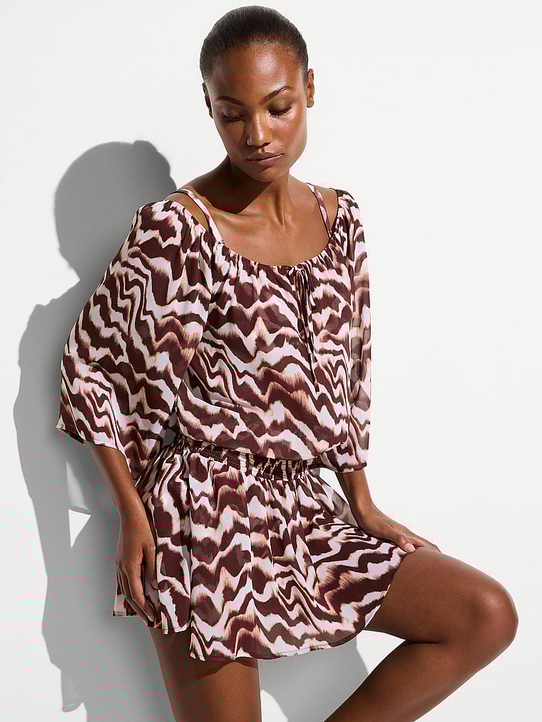 Victoria's Secret Swim Beachwear Sheer Crinkle Smocked Mini Dress