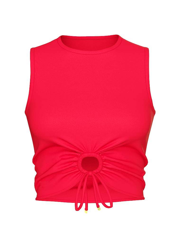 Cropped, cinched, and crafted in water-ready swim fabric, this little Tank is one of the chicest options under the sun. A trendy choice to top off Shorts and Skirts, it can also be worn for extra coverage in the pool or ocean.