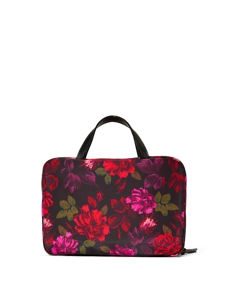 Set up shop. This hanging Travel Toiletry Bag holds everything you could ever need. Keep all your products, from makeup to hair care, organized with a hook to hang as you get ready. Features a bold floral design for added style.