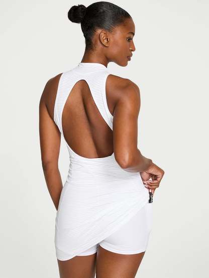 Dressed and ready for anything. This short-sweet stunner offers a winning combination of our cool-touch XReact™ performance fabric with striped mesh for sheer appeal. An adjustable zipper makes it perfect for day-to-night styling.