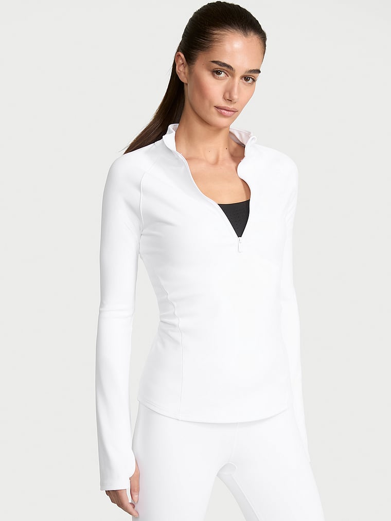 We're changing the game with white pieces you can sweat through that resist show-through. Our optic performance collection puts an innovative twist on summer’s white-hot activewear trend. This fitted, half-zip style helps you keep your cool—the fabric is specially treated to help offer protection from the sun's damaging rays.