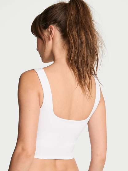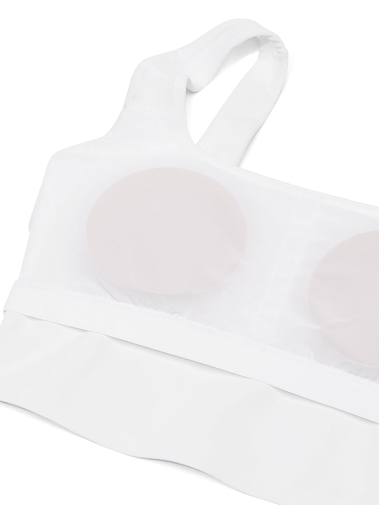 Get the look of a crop top with the built-in support of a sports bra. Our optic activewear collection offers an innovative twist on Summer Whites with Anti-Sheer technology for added coverage. Permission to go get sweaty outside without worrying about show-through.